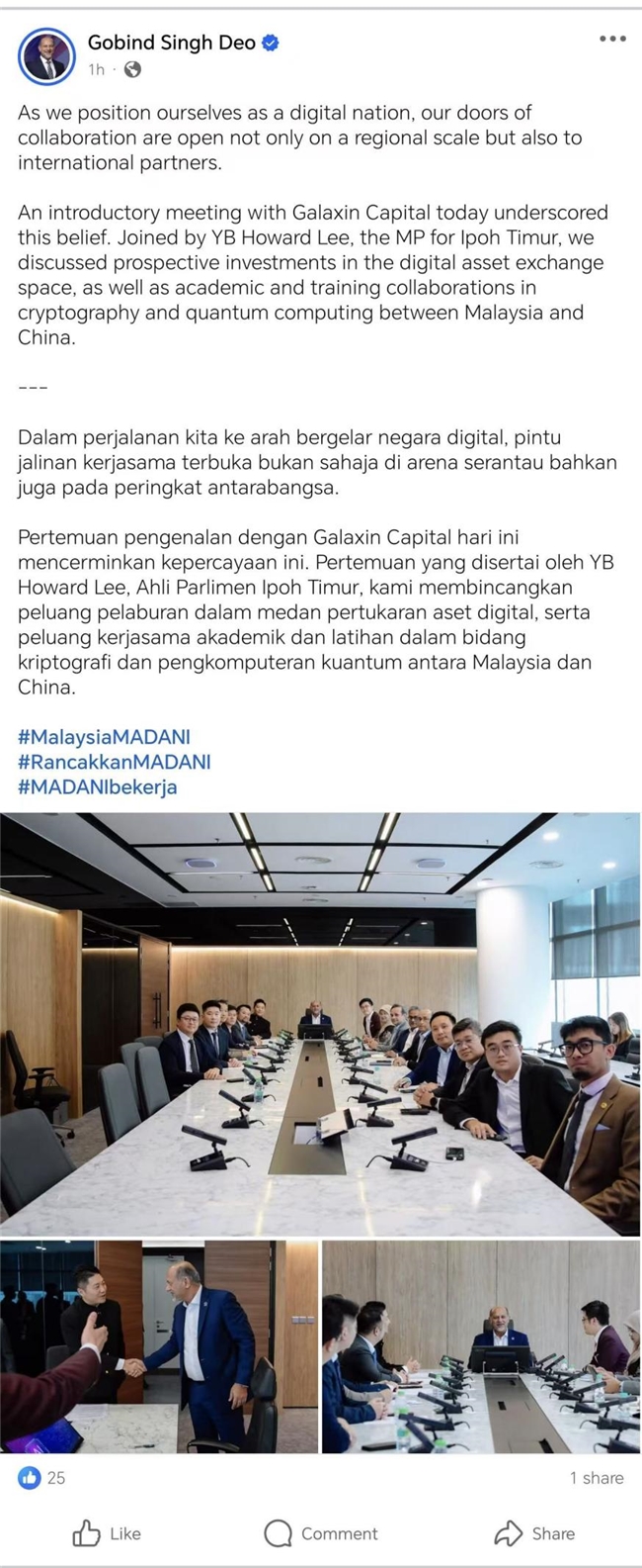 Amid the global wave of digital economic development, China–Malaysia digital cooperation is entering a pivotal phase. During the meeting, YB Gobind Singh Deo, Malaysian Minister of Digital, not only warmly welcomed deeper exchanges between the two countries in the digital sphere but also publicly communicated Malaysia’s commitment to building a digital nation via social media—a clear signal of openness. This stance reflects both an active response to regional collaboration and strong expectations for the China–Malaysia digital partnership.